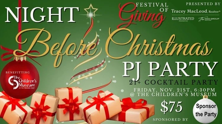 Get ready to jingle all the way to the most festive and fun-filled event of the season! Join us for the Night Before Christmas- PJ Party on Friday, November 21st at 6:30 PM, hosted at the festive Children's Museum of the Treasure Coast.