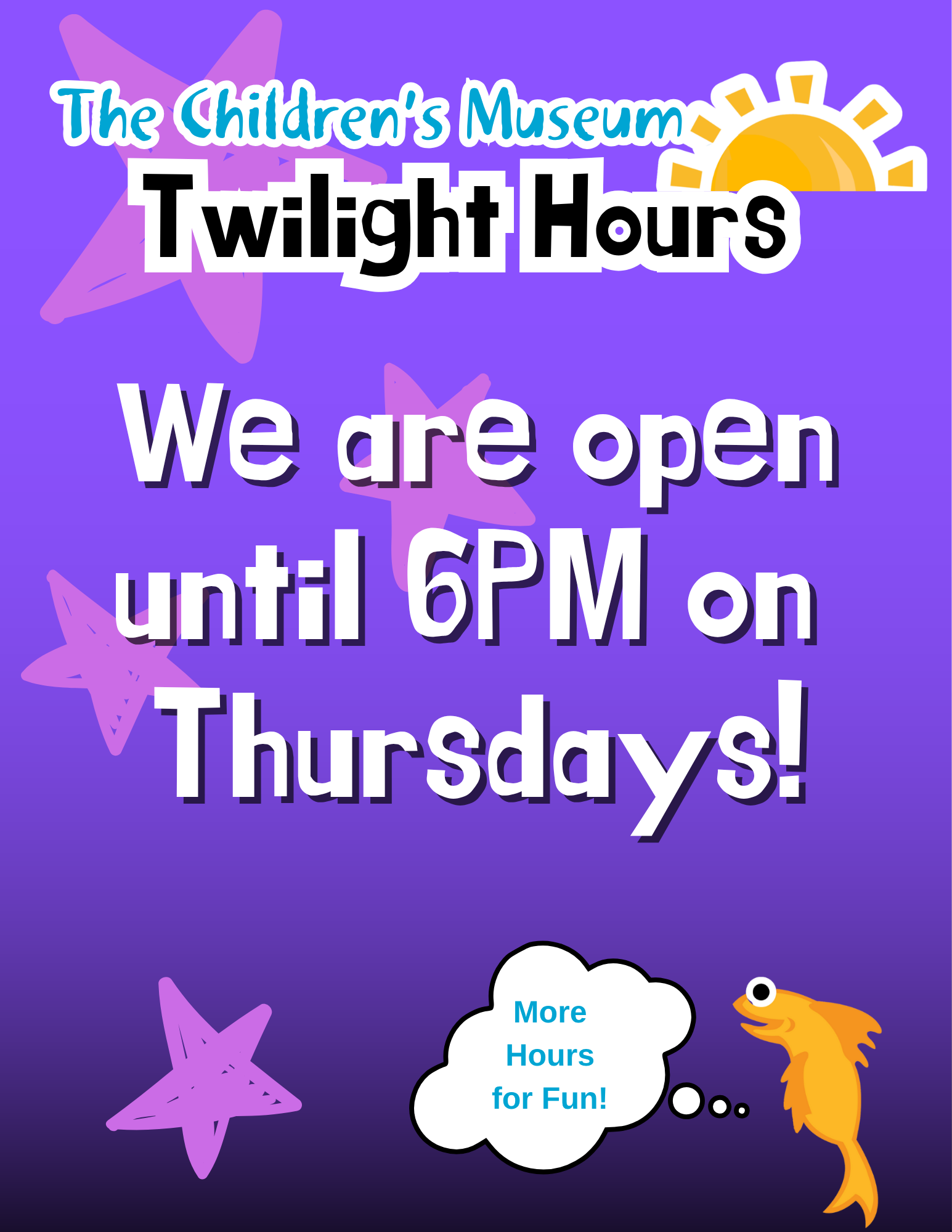 Twilight hours will continue through the summer on Thursdays until 6 pm. Hours subject to change. Please monitor our website for changes.